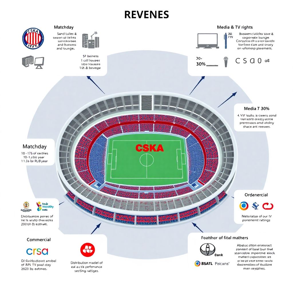 Чтобы не утонуть в деталях, полезно держать в голове простую схему: у клуба есть четыре крупных блока доходов и четыре базовых блока расходов. Доходы — это матчдэй (билеты, абонементы, VIP), медиа (телеправа, цифровой контент), коммерция (спонсоры, реклама, мерч) и трансферы. Расходы ЦСКА на игроков и инфраструктуру делятся на зарплаты и премиальные, трансферные выплаты, эксплуатацию стадиона и базы, а ещё административные и маркетинговые затраты. Схема одинакова почти для всех клубов, но пропорции у армейцев специфические: сильный бренд, стадион в собственности и заметный интерес крупных корпораций к спонсорству.